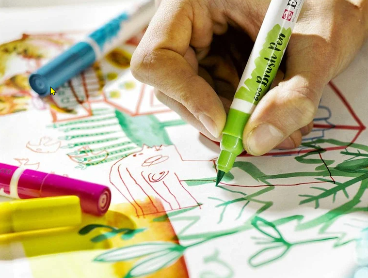 Le Brush Pen de Talens Ecoline est très facile à utiliser. Il est pratique quand vous êtes à l’extérieur et idéal si vous travaillez dans un endroit qui doit rester propre. Le Brush Pen est prêt à l’emploi et en plus il est inodore. Vous pouvez utiliser le Brush Pen pour tirer des lignes fines et précises ou bien des traits énergiques, mais aussi pour colorier des surfaces plus grandes. Le Brush Pen convient aussi bien aux croquis rapides qu’à l’application de la touche finale.