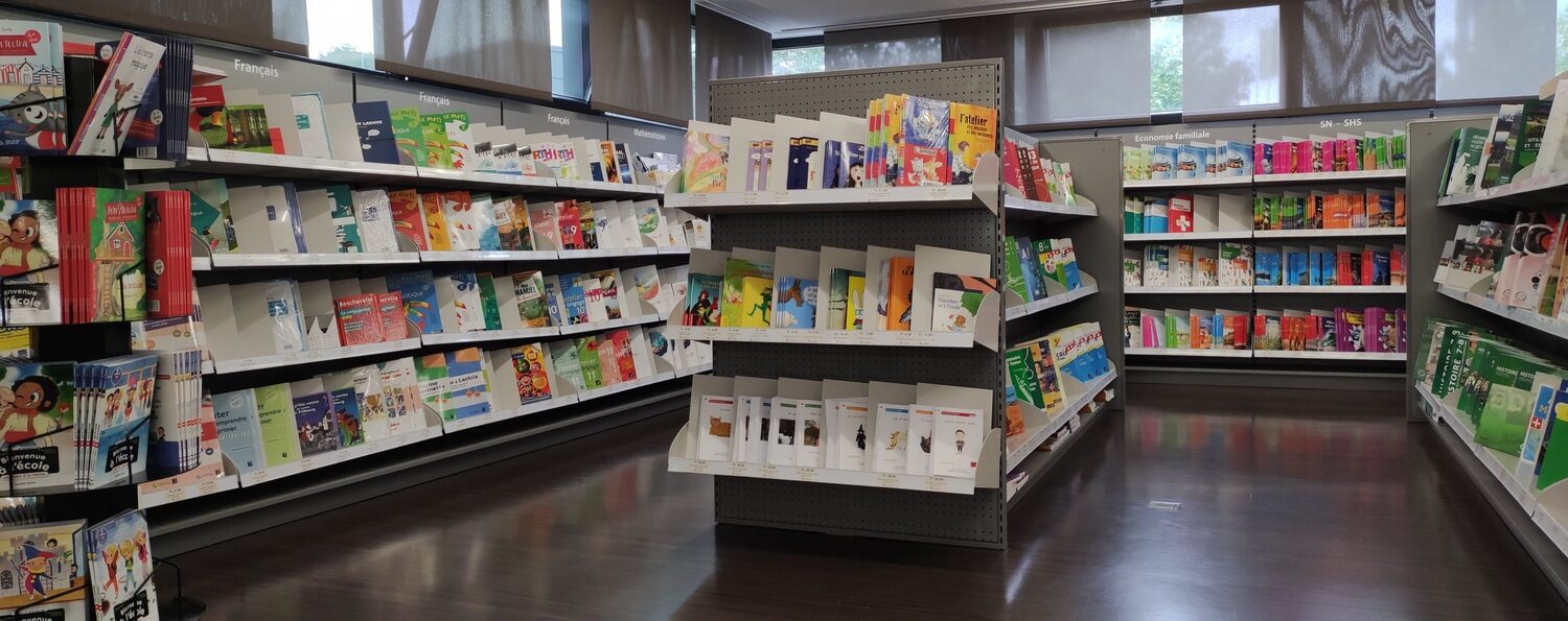 Sur le site de Granges-Paccot, le stock de livres et jeux se résume à ce qui est présenté au magasin. Vous y trouverez en principe chaque titre figurant à notre catalogue. La quantité disponible en rayon à Granges-Paccot varie en fonction de la popularité du titre : en général entre un et douze exemplaires par titre.